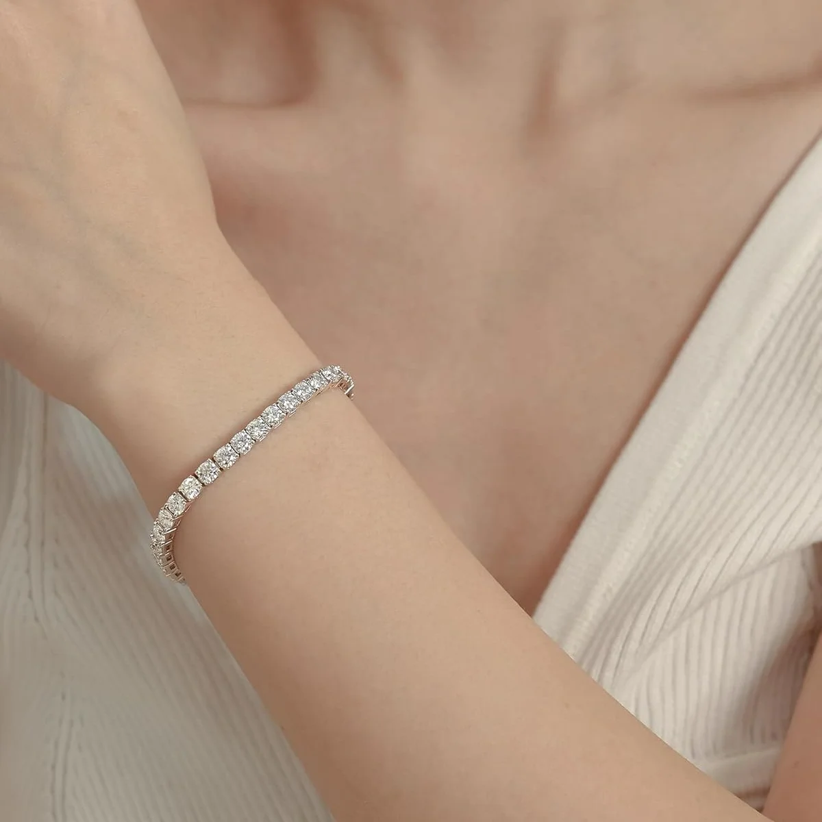 S925 Sterling Silver Tennis Bracelet. 3, 4, 5 mm Moissanite Fine Jewelry. Hypoallergenic 6.69 – 8.66 inch Length.