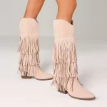 Bring vintage Western energy to your wardrobe with these stunning fringed cowgirl boots—bold, beautiful, and effortlessly stylish.
