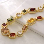 Vintage 18K Gold Plated Multi Colored Gemstone Chain Bracelet. Cubic Zirconia Colorful CZ Bracelet. JEWELRY For Men And Women. Add a touch of Bling to any outfit.
